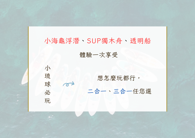 小琉球玩樂套票加購只要 $1,000/人(原價 $1,380)