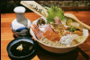 集結了厚切鮭魚生魚片、生食級甜蝦、炙燒干貝、蟹膏、鮪魚、鮭魚卵、熟吻仔魚、九孔鮑等10多種食材,澎派的份量不僅一上桌就秒殺記憶體,每一口飯還都能配搭豐富佐料、幸福指數破表。
