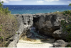在琉球嶼東北方的龍蝦洞一帶珊瑚礁海岸,分布著許多壺穴小地形與海蝕溝。其壺穴屬於海成壺穴,壺口呈現圓形,底部因為溶蝕作用與再沉澱作用而變得很平坦。與其他地方的海成壺穴不同的是,許多壺穴裡並沒有小石子等研磨工具存在。海蝕溝是波浪沿著海岸較脆弱的地方或解理面進行侵蝕作用所產生的,所以會呈現線型的外狀。龍蝦洞的海蝕溝外觀寬且深,非常發達。每當海浪進入溝中,潮聲如吼,頗為壯觀。